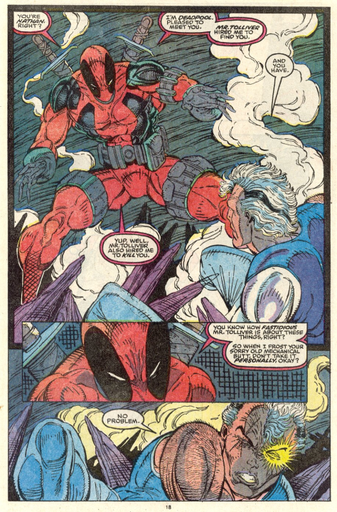 Here’s a peak at the very first actual appearance of Deadpool, looking tough as nails and ready for combat!